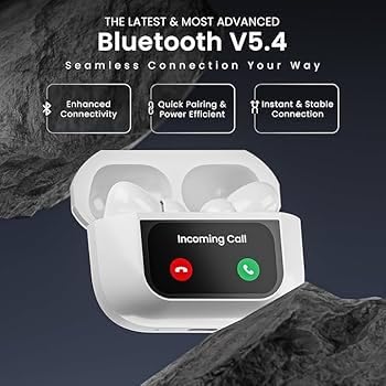 Acerca de este artículo Los primeros TWS con pantalla en estuche: Presentamos la fusión inteligente de estilo de vida y utilidad con Hammer's Screen TWS. Estos auriculares bluetooth vienen con un estuche de pantalla táctil con funciones ilimitadas que le permiten elegir la comodidad Tecnología ANC + ENC de 32 db que cierra el resto: Escápese del caos, abrace la música. Nuestros auriculares tws con tecnología ANC + ENC son su boleto a una escucha serena. Viene con 2 modos: ANC y modo de transparencia para cambiar entre su experiencia auditiva Estuche inteligente para acceder a todo: Los auriculares inalámbricos Hammer screen tws vienen con un estuche inteligente digital con el que puede controlar el volumen, reproducir / pausar música, reproducir la pista anterior / siguiente, cambiar los fondos de pantalla y habilitar la reducción de ruido y el ecualizador de música. También tiene funciones como linterna, cámara, configuración de alarma, configuración de fecha / hora, idioma, brillo, etc. Llamadas nítidas, claras y sin complicaciones: experimente llamadas nítidas mientras viaja con nuestros auriculares de pantalla con tecnología inalámbrica bluetooth con micrófono incorporado. Ahora Mantente conectado sin esfuerzo mientras disfrutas de una calidad de sonido envolvente mientras llamas o escuchas música Bajos definitivos que te mantienen enganchado: con un potente controlador de sonido de 13 mm, estos auriculares te brindarán un sonido delicioso que admirarás. Experimenta el latido de tu música con auriculares que cuentan con bajos profundos y resonantes. Prepárate para sumergirte en cada ritmo y elevar tu experiencia auditiva a nuevas alturas con la nueva pantalla TWS de Hammer El Bluetooth V5.4 más avanzado y último: Adéntrate en el futuro del audio inalámbrico con nuestros últimos y más avanzados auriculares internos Bluetooth v5.4. Disfruta de una conectividad perfecta, un alcance de 10 m y una experiencia auditiva verdaderamente inmersiva Carga tipo C conveniente: la carga sin esfuerzo se combina con la comodidad moderna con la carga tipo C en nuestros últimos auriculares con pantalla. Disfruta de recargas rápidas y sin complicaciones que te mantienen conectado a tu música sin perder el ritmo. Reproducción ininterrumpida de hasta 13 horas: Los auriculares inalámbricos Hammer Screen ofrecen hasta 13 horas de reproducción continua y hasta 50 horas de tiempo en espera. Experimenta la libertad musical y disfruta de tus listas de reproducción sin interrupciones. Encuentra mis auriculares: Encuentra tus auriculares fácilmente con solo tocar la pantalla. Ya sea que los hayas perdido en tu bolso o los hayas olvidado, nuestra aplicación te ayuda a encontrarlos rápidamente para que puedas volver a disfrutar de tu música sin problemas.