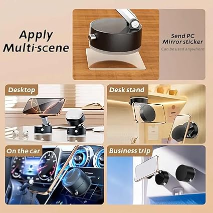 Rotación de 360° para máxima flexibilidad: con inclinación y giro flexibles, este soporte magnético portátil para teléfono celular al vacío permite un fácil ajuste del ángulo de visión. Ya sea para GPS, ver video o llamar, responder, encontrar el ángulo perfecto es sin esfuerzo